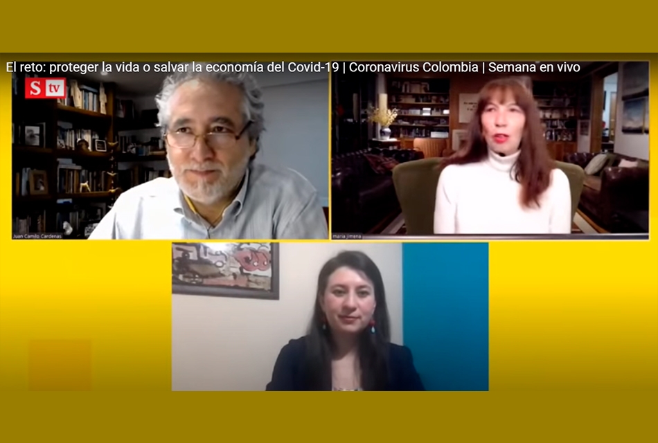 El 24 de junio de 2020, el investigador senior de EfD Colombia, Juan Camilo Cárdenas, fue uno de los invitados al programa “Semana en vivo” dirigido por la reconocida periodista colombiana María Jimena Duzán. El tema del programa fue “El desafío: proteger la vida o salvar la economía del COVID-19”. En este programa, Juan Camilo conversó con la epidemióloga e investigadora colombiana Zulma Cucunubá, quien trabaja en el Imperial College London, sobre cómo la economía y la epidemiología pueden trabajar juntas para ofrecer soluciones a la crisis del coronavirus. Entre muchos otros temas importantes, Juan Camilo mencionó en este programa la importancia del rol de la comunidad para la superación de la pandemia y cómo esta crisis representa una oportunidad para que la economía avance hacia un camino de desarrollo más sustentable.